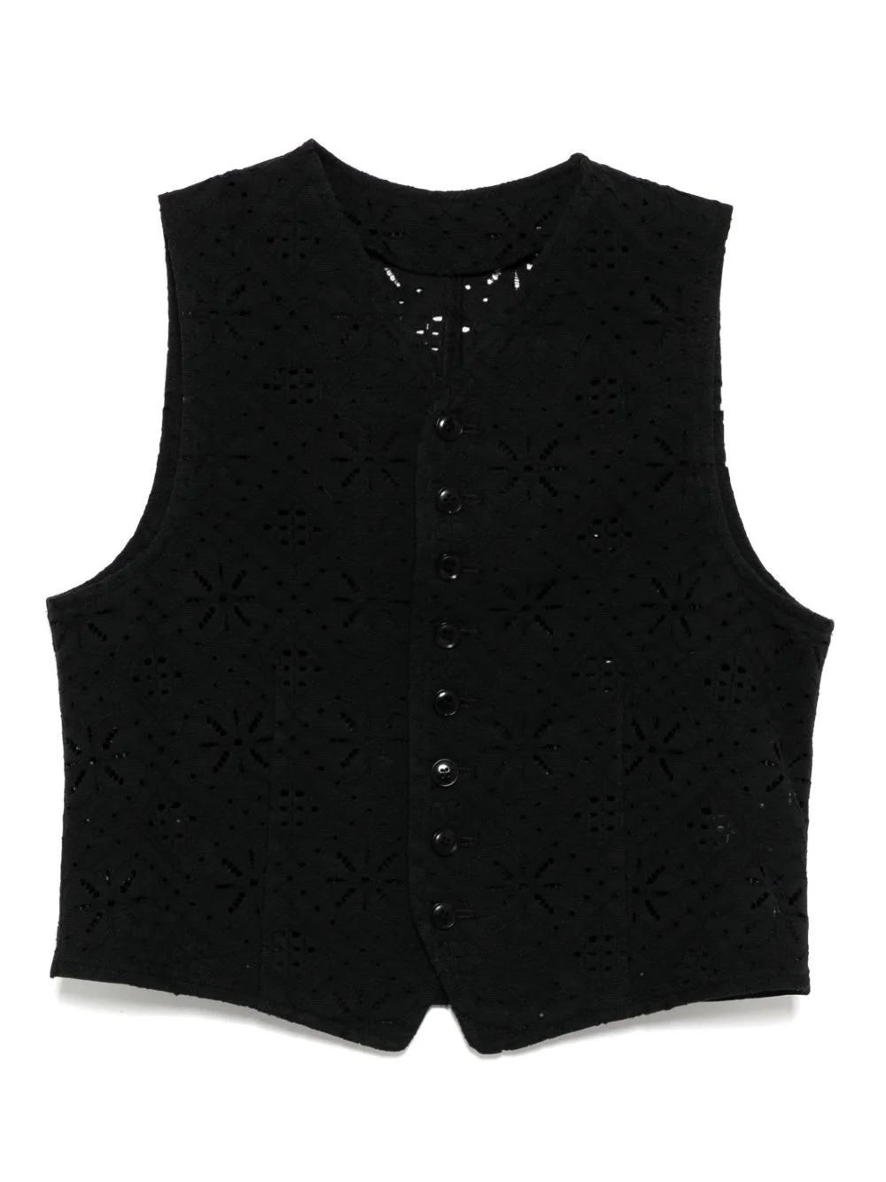 laced sleeveless vest Highlights - Black - Front button fastening - V-neck - Semi-sheer construction Imported Composition Cotton 80%, Polyester 20%