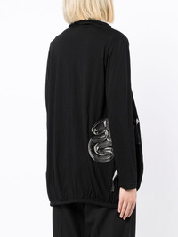 logo-patchwork cardigan black cotton-blend patchwork detailing logo patch to the side open front gathered detailing long sleeves Imported Composition Cotton 55%, Rayon 45% SIZE & FIT Model measurements Height 5 ft 10 in(1.78 m) Bust/Chest 28.34 in(72 cm) Hips 35.43 in(90 cm) Waist 23.62 in(60 cm) FittingInformation This piece fits true to size. We recommend you get your regular size Cut for a loose fit Made with a lightweight fabric Washing instructions Dry Clean Only