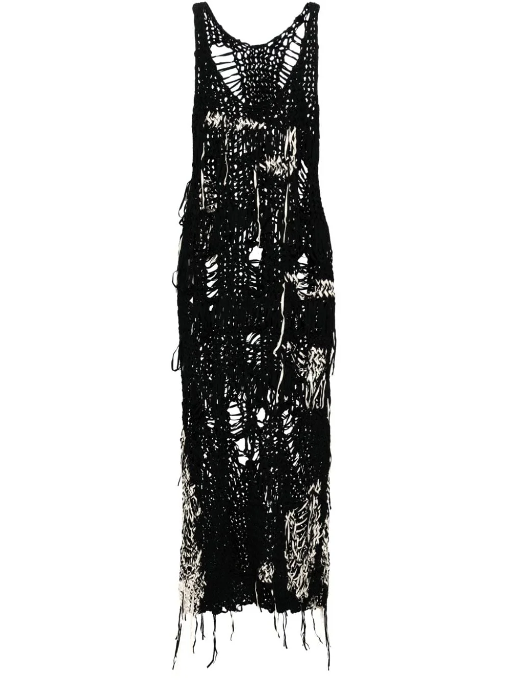open-knit cotton dress Highlights - Black - Cotton - Open knit - Scoop neck - Sleeveless - Frayed edge Imported Composition Cotton 100% Washing instructions Dry Clean Only