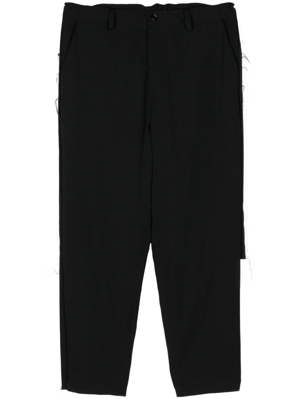 raw-cut tapered trousers Highlights - Black - Wool - Raw-cut edge - Mid-rise - Belt loops - Front button fastening - Two side slit pockets - Rear patch pocket - Tapered leg Imported Composition Wool 100%