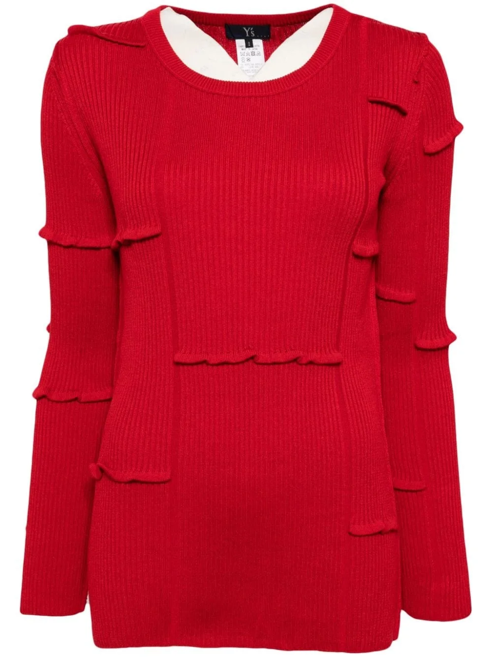 pleat rib knit jumper Highlights - Scarlet red - Ribbed knit - Crew neck - Pleat detailing - Ruffled detailing - Long sleeves Imported Composition Acrylic 70%, Wool 30% SIZE & FIT FittingInformation Designed for a slim fit that sits just away from the body offering a close yet comfortable fit Made with a midweight knit, this piece offers some stretch