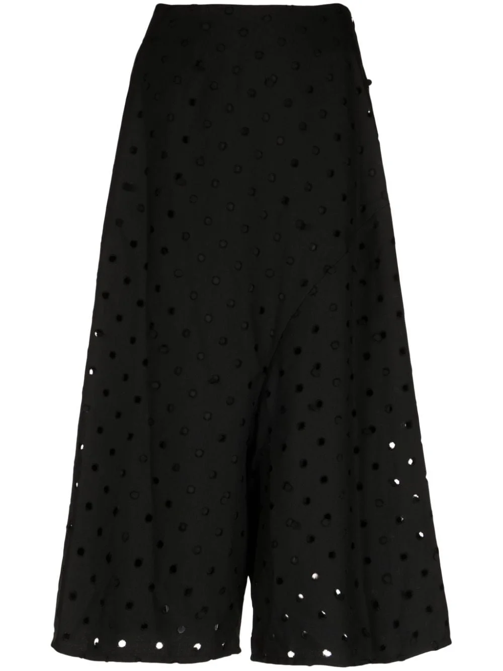 polka dot gabardine cropped trousers Highlights - Black - Wool blend - Gabardine weave - Distressed effect - Wrap design - Polka dot pattern - Perforated detailing - Wide leg - Concealed side fastening - Cropped Imported Composition Outer: Polyester 50%, Wool 50% Lining: Cupro 100% Washing instructions Dry Clean Only