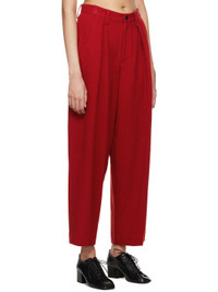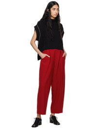 Wool-blend twill trousers. · Belt loops · Two-pocket styling · Zip-fly · Inverted box pleats at front · Partial cupro satin lining Supplier color: Red Body: 90% wool, 10% polyamide. Lining: 100% cupro. Made in Japan 242731F087016