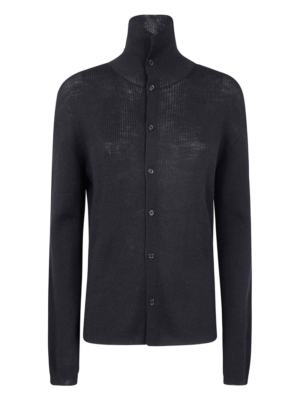 ribbed high-neck cardigan Highlights - Black - Ribbed texture - High neck - Front button fastening - Long sleeves Imported Composition Wool 100% Washing instructions Read Manufacturer Guidelines