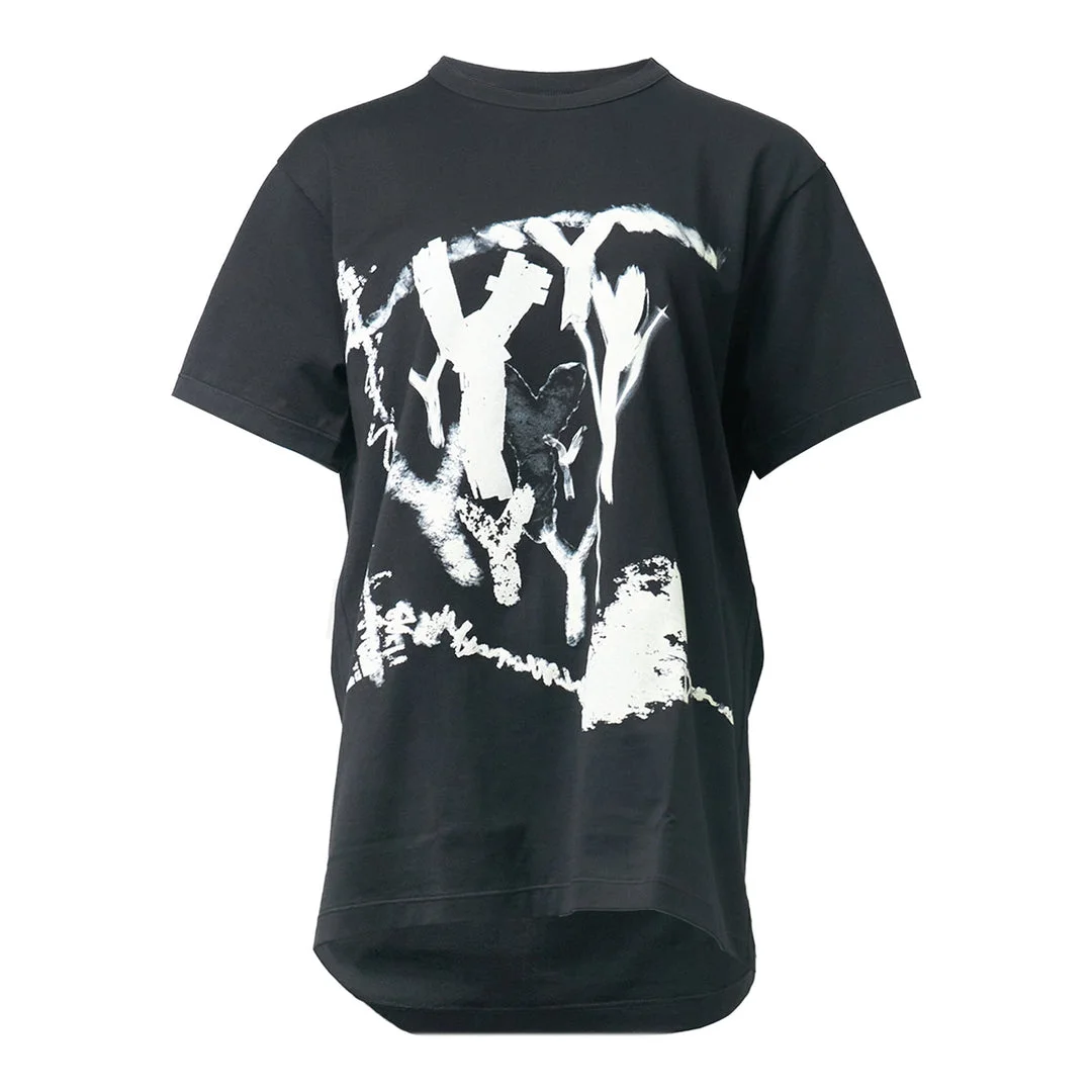600077467BLK002 / YQ-T25-678/00/3 - Abstract white graphic print - Round neckline - Half sleeves - Oversized relaxed fit - Premium cotton construction - Longer back hem Y's Round Neck Half Sleeve Tee delivers Japanese avant-garde design with contemporary wearability and artistic expression. Crafted from premium cotton in deep charcoal black, featuring an abstract white graphic print that embodies Yohji Yamamoto's deconstructed aesthetic. The oversized silhouette and signature Y's artistic vision create a statement piece that bridges streetwear and high fashion.