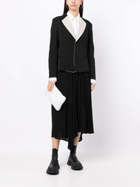 single-breasted wool blazer black/white wool tailored cut front button fastening contrasting lapels two front welt pockets long sleeves rear slit straight hem Imported Composition Wool 100% SIZE & FIT Model measurements Height 5 ft 10 in(1.78 m) Bust/Chest 33.07 in(84 cm) Hips 33.85 in(86 cm) Waist 25.19 in(64 cm) FittingInformation This piece fits true to size. We recommend you get your regular size Cut for a loose fit Made with a mid-weight non-stretch fabric Washing instructions Dry Clean Only