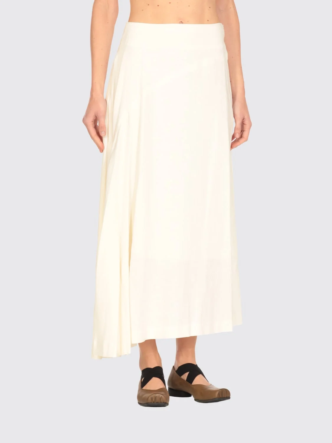 DESCRIPTION - Style: Minimal - Waist: High - Bottom: With asymmetric hemline - Shape: Flared - Closure: Concealed - Length: Long skirts - Materials: Rayon - Pattern: Plain-colored DETAILS AND CARE Composition 70% Rayon 30% Linen Lining: 100% Cupro SIZE AND FIT Sizes not available Size and fit Regular fit Designer code: YTS01229 1 Giglio Code: H01624 Designer: Y's Collection: Y's Woman Category: Clothing Y's