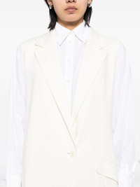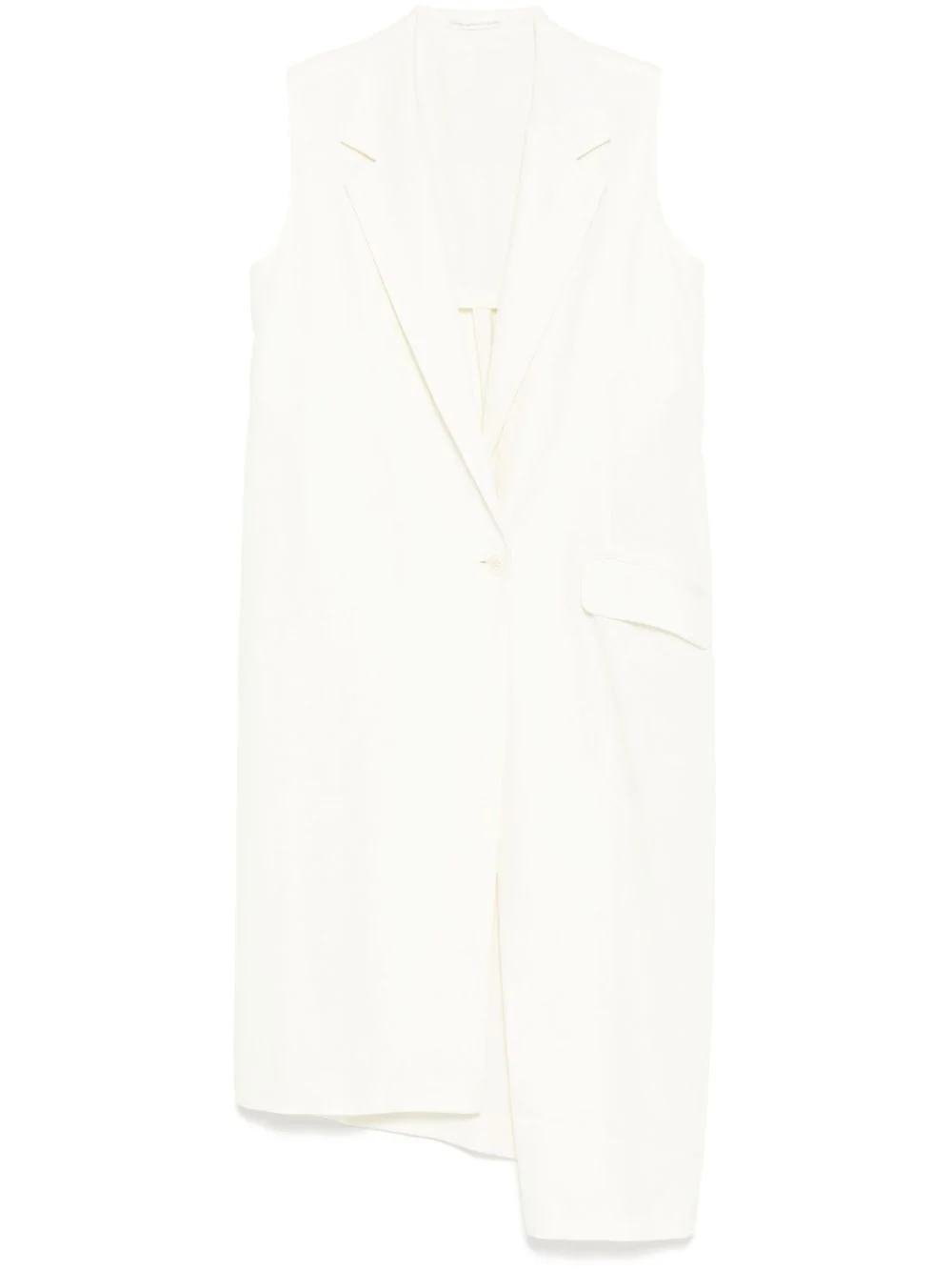 single-breasted vest coat Highlights - Off-white - Front button fastening - Side flap pocket - Notched lapels - Sleeveless Imported Composition Viscose 100% SIZE & FIT Model measurements Height 5 ft 10 in(1.77 m) Bust/Chest 31.49 in(80 cm) Hips 35.43 in(90 cm) Waist 25.19 in(64 cm)