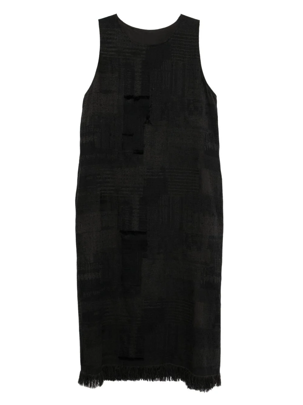 twill sleeveless dress Highlights - Dark grey - Crew neck - Sleeveless - Side welt pocket - Fringed edge Imported Composition Outer: Cotton 100% Lining: Cupro 100% SIZE & FIT Model measurements Height 5 ft 10 in(1.78 m) Bust/Chest 29.92 in(76 cm) Hips 34.64 in(88 cm) Waist 24.8 in(63 cm) FittingInformation Designed for a relaxed fit, this piece allows for comfort and movement when worn Made from a midweight non-stretch fabric Washing instructions Dry Clean Only