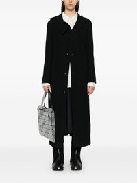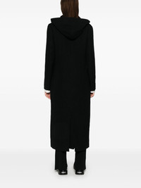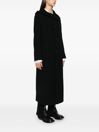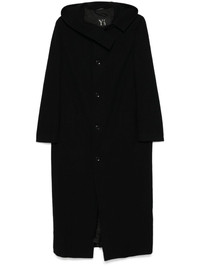 wool coat Highlights - Black - Wool - Twill weave - Brushed effect - Front button fastening - Funnel neck - Classic hood - Long sleeves - Two side welt pockets - Full lining - Straight hem - Mid-length Imported Composition Outer: Wool 100% Lining: Cupro 100% SIZE & FIT Model measurements Height 5 ft 10 in(1.78 m) Bust/Chest 33.85 in(86 cm) Hips 36.61 in(93 cm) Waist 26.77 in(68 cm) FittingInformation Designed to be unstructured, offering a loose fit throughout The vented hem offers movement at the rear Made from a midweight non-stretch fabric