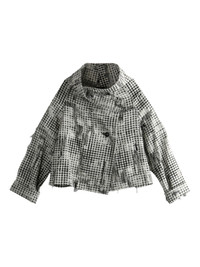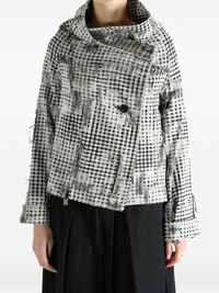 check-pattern frayed-hem jacket Highlights - White and black - Check pattern - Frayed detailing - Button fastening - High neck - Long sleeves Made in France Composition Fabric 100% Washing instructions Read Manufacturer Guidelines