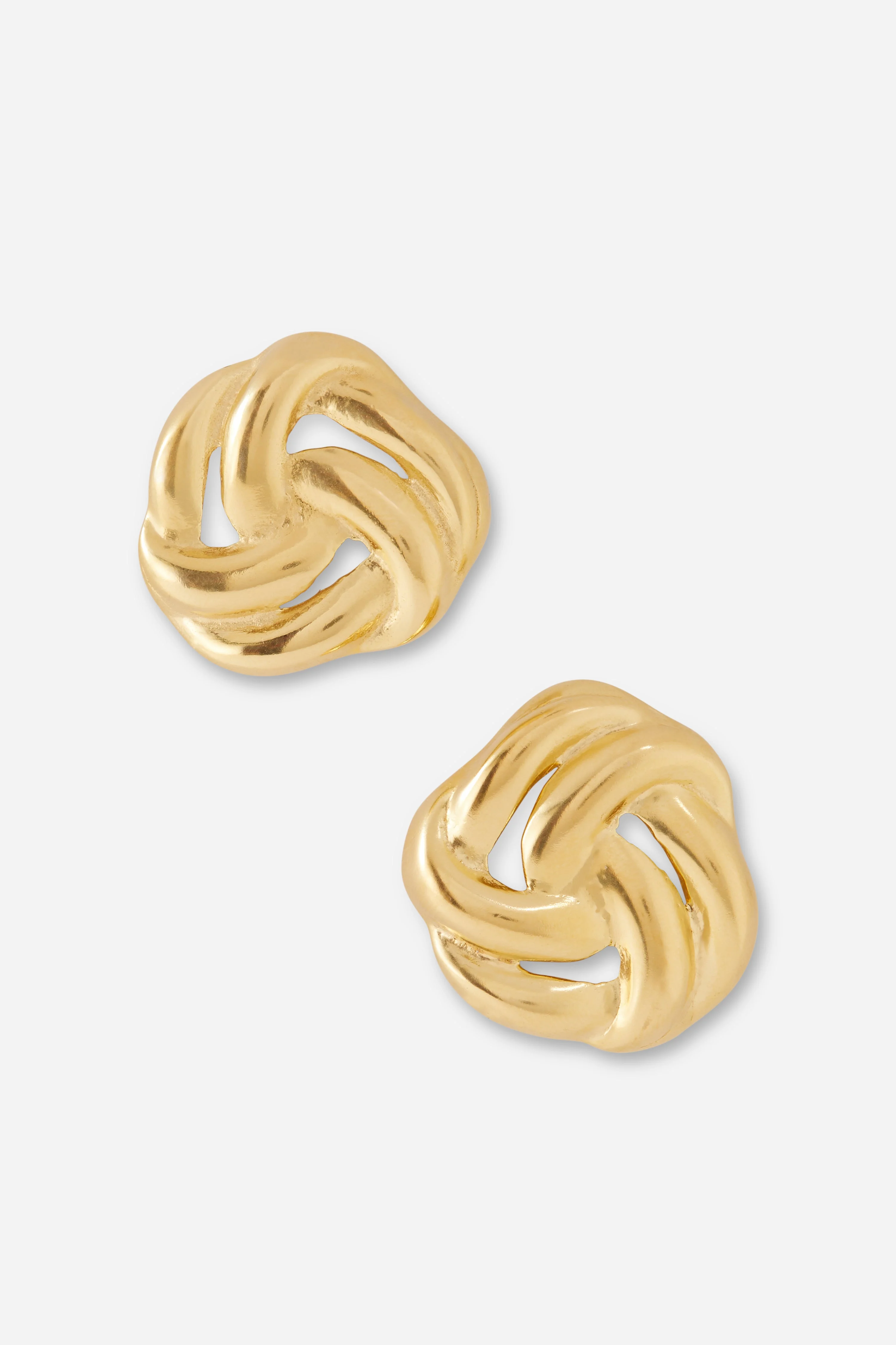 THE DESIGN STORY Danielle Copperman x YSSO: Our Bal Earrings take on the form of infinity knots — geometric sculptures with no beginning or end. They frame the face in a golden light and can be styled for any occasion. Details Made in Greece, from up to 35% recyclable bronze double plated with 18 and 24 karat gold. Artfully hand-sculpted for lightweight feel. Designed with a post-back. L:3cm W: 3.2cm Each side is 11.5 grams.v