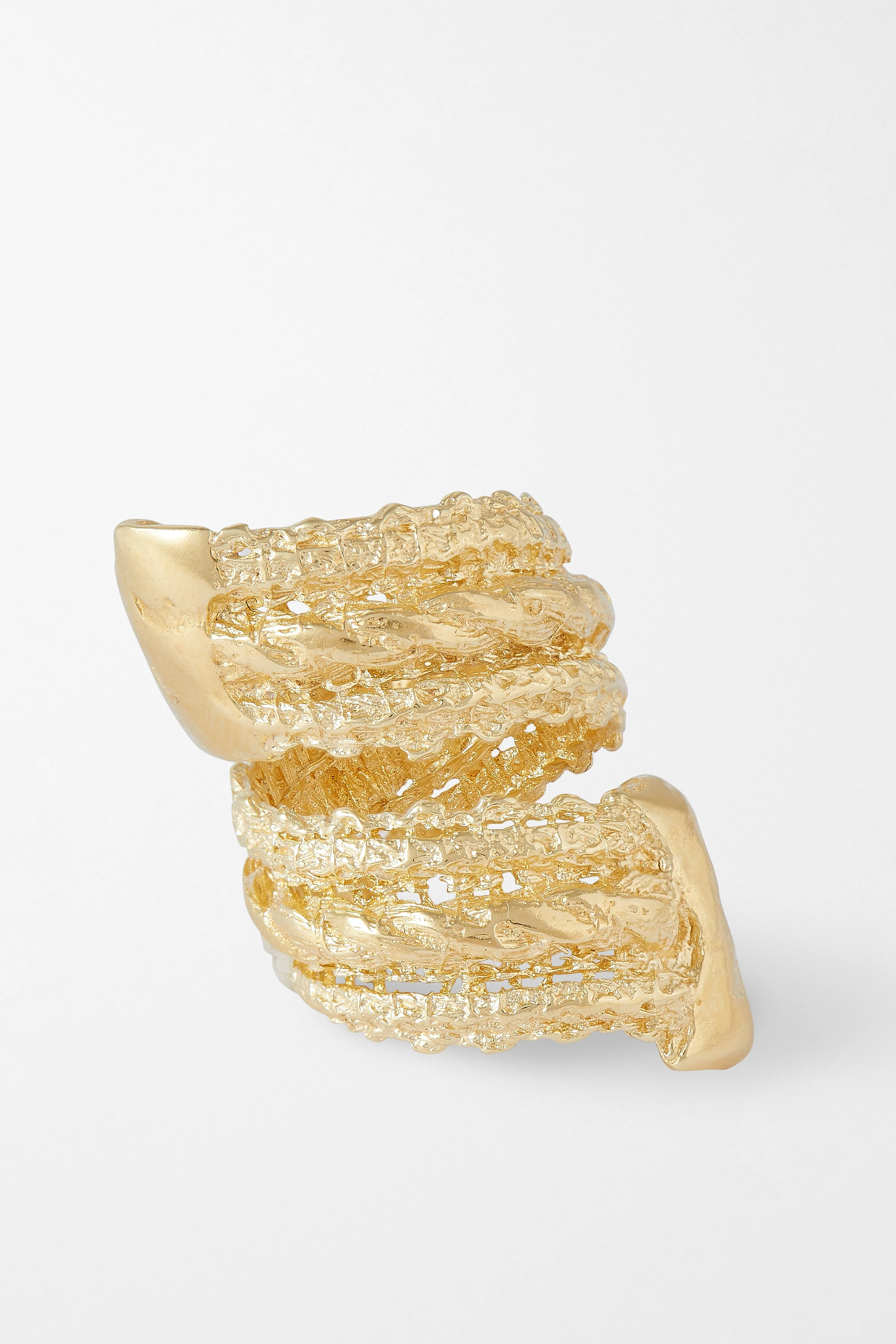 THE DESIGN STORY One of our signature rings, the Aella ring is a great example of YSSO’s dedication to exploring new textures. Inspired by the story of Aella — a female Amazonian warrior known for her incredible fighting skills, courage and pride — the double wrap design nods to her weapon of choice, the axe, and the glorious power of the warrior herself. The Aella ring is adjustable, stretched or compressed up and down the finger. Details Made in Greece, from up to 35% recyclable bronze double plated with 18 and 24 karat gold. Artfully hand-sculpted, fully adjustable. Weighs 9.5 grams.