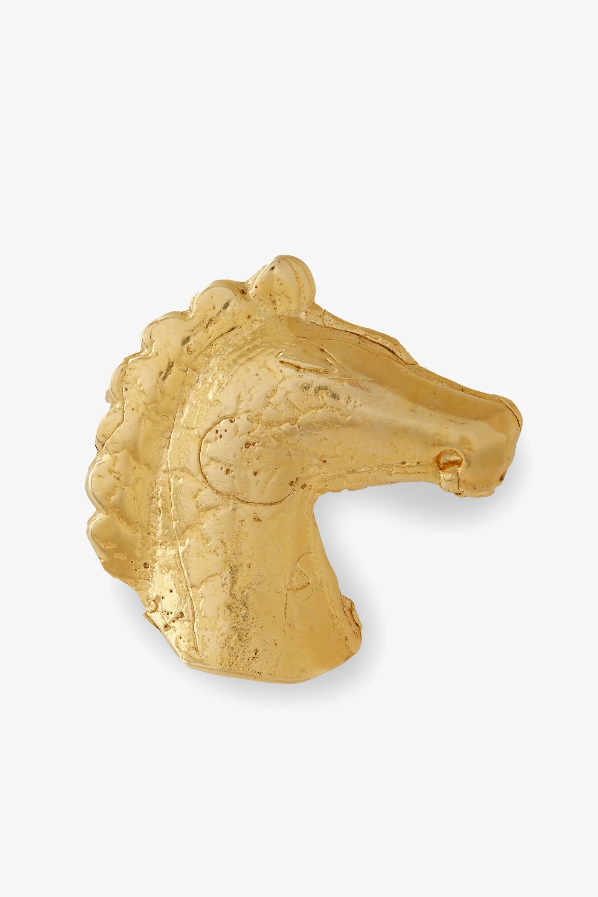 THE DESIGN STORY Horses have long held esteemed positions alongside some of the most celebrated heroes. Equestrian imagery — an enduring symbol of strength and loyalty — can be found throughout Classical and Hellenistic artwork. Details Made in Greece, from up to 35% recyclable bronze double plated with 18 and 24 karat gold. Artfully hand-sculpted with a secure pin.