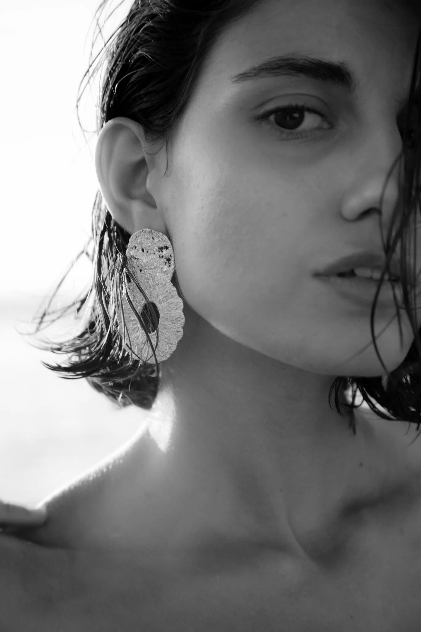 THE DESIGN STORY In Greek mythology, the story goes that a nymph named Amaryllis courted a shepherd who was passionate about flowers. Through her determination and pure heart, the Amaryllis flower bloomed. Our Amaryllis earrings are an abstraction of the beautiful flower, with lace-like metalwork and featherweight appearance. Details Made in Greece, from up to 35% recyclable bronze double plated with 18 and 24 karat gold. Artfully hand-sculpted for lightweight design. Designed with a post-back. L: 7cm W:4.3 cm