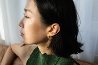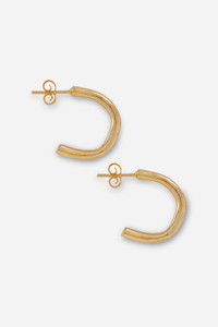 THE DESIGN STORY Made to be lived in, our Baby hoops are lightweight and incredibly versatile. Their smaller size makes them a minimalistic, yet mighty addition to any ensemble. Details Made in Greece, from up to 35% recyclable bronze double plated with 18 and 24 karat gold. Artfully hand-sculpted for lightweight feel. Designed with a post-back. L: 2 cm W: 0.3 cm Each side is 3.6 grams.