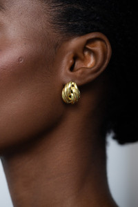 The Clos earrings are our love letter to fluidity and form. Meticulously crafted by hand, the earrings are inspired by the warp and weft of a tapestry and the intricate knotting of rope. Details Made in Greece, from up to 35% recyclable bronze double plated with 18 and 24 karat gold. Artfully hand-sculpted for lightweight. Designed with a post-back and hollow for comfort. Each side weighs 2.5 grams.