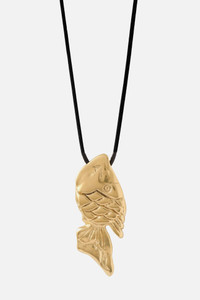 THE DESIGN STORY Inspired by the 12th astrological sign in the zodiac, our Pisces pendant depicts a hand-carved golden fish, suspended by a contrasting black string. In Greek mythology, Pisces has many associations with the goddess of love and beauty, Aphrodite. One such myth says that the goddess is responsible for Pisces' honourable place in the night sky. Details Made in Greece, from up to 35% recyclable bronze double plated with 18 and 24 karat gold. Artfully hand-sculpted, fully adjustable.