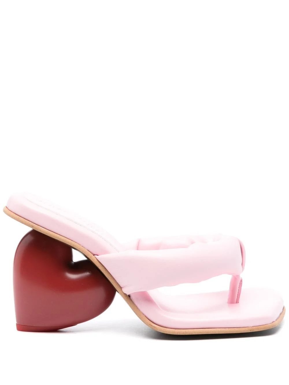 110mm Love sandals Highlights - Bubblegum pink/red - Faux leather - Smooth grain - Padded straps - Square open back - Thong style - Branded insole - 110mm high sculpted heel - Heart motif - Rubber sole - Slip-on style Imported Composition Other fibres 100% SIZE & FIT Measurement HEEL 4.33 in(11 cm) Sole height 0.47 in(1.2 cm)