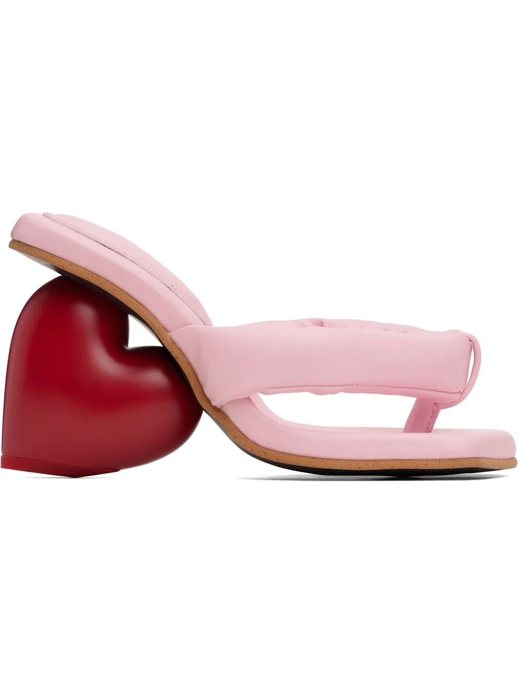 Padded grained faux-leather mules in pink. · Open square toe · Thong-style strap at vamp · Logo stamp at padded footbed · Sculptural wedge heel with rubber injection · Treaded rubber sole · Heel: H3.5" Supplier color: Candy/Red Upper: synthetic. Sole: rubber. Made in Portugal 251844F125009