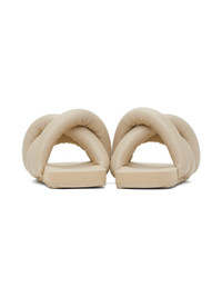 Padded faux-leather flat sandals in beige. · Open toe · Criss-crossing straps at vamp · Logo embossed at foam rubber footbed · Treaded rubber sole Supplier color: Beige Upper: synthetic. Sole: rubber. Made in Portugal 241844F124001