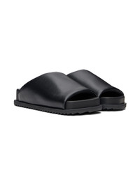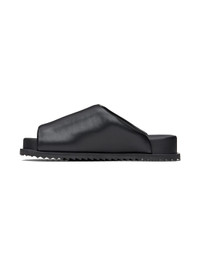 Padded grained faux-leather slip-on flat sandals in black. · Open square toe · Logo printed at footbed · Covered midsole · Treaded TPU sole Supplier color: Black Upper: synthetic. Sole: rubber. Made in Portugal 241844F121011