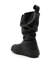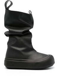 Low Fisherman boots Highlights - Black - Faux leather - Grained texture - Gathered detailing - Round toe - Rubber toecap - Mid-calf length - Debossed logo to the rear - Double pull-tab at the opening - Branded insole - Faux-leather lining - Platform sole - Rubber outsole - Slip-on style Imported Composition Outer: Calf Leather 100% Lining: Polyurethane 100% Sole: Rubber 100% SIZE & FIT Measurement CIRCUMFERENCE 14.17 in(36 cm) HEEL 1.57 in(4 cm) HEIGHT 10.62 in(27 cm) PLATFORM 1.57 in(4 cm)