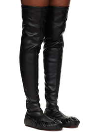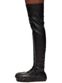 Thigh-high stretch faux-leather boots. · Paneled construction · Gathering at toe and sides · Bonded jersey lining · Leather sole Supplier color: Black Upper: synthetic. Sole: leather. Made in Portugal 252844F116001