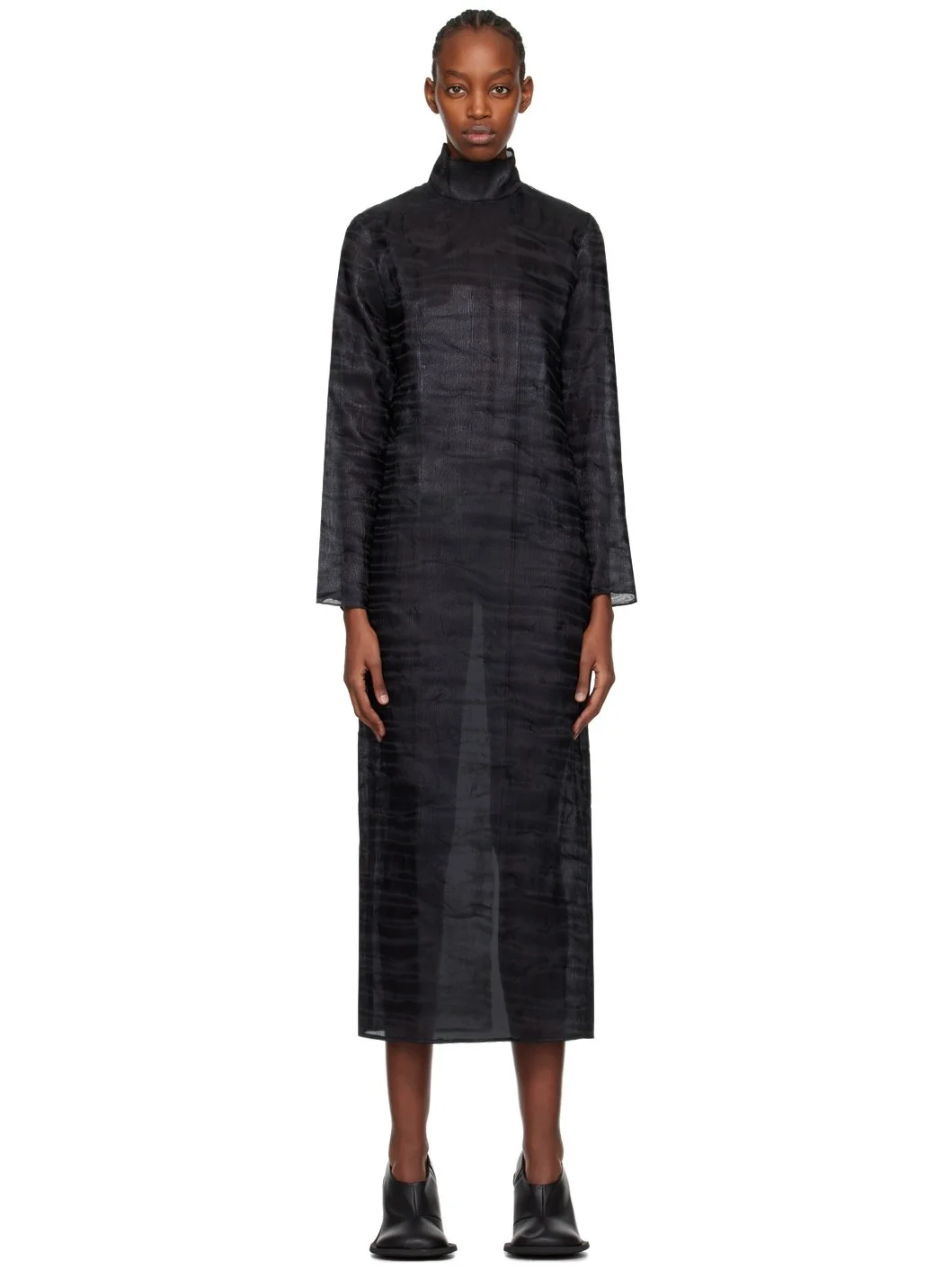 Silk-blend lame dress. Silk-blend chiffon overlay throughout. · Paneled and layered construction · Turtleneck · Concealed zip closure at back · Central vent at back hem · Unlined Supplier color: Black 34% silk, 34% polyester, 32% polyamide. Made in Netherlands 241844F055000
