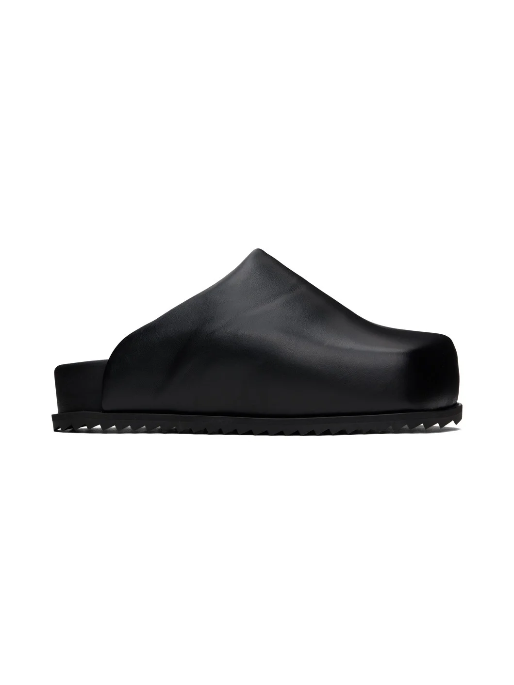 Buffed faux-leather slip-on loafers in black. · Square toe · Logo stamp at molded footbed · Treaded TPU sole Supplier color: Black Upper: synthetic. Sole: thermoplastic polyurethane. Made in Portugal 241844F121003