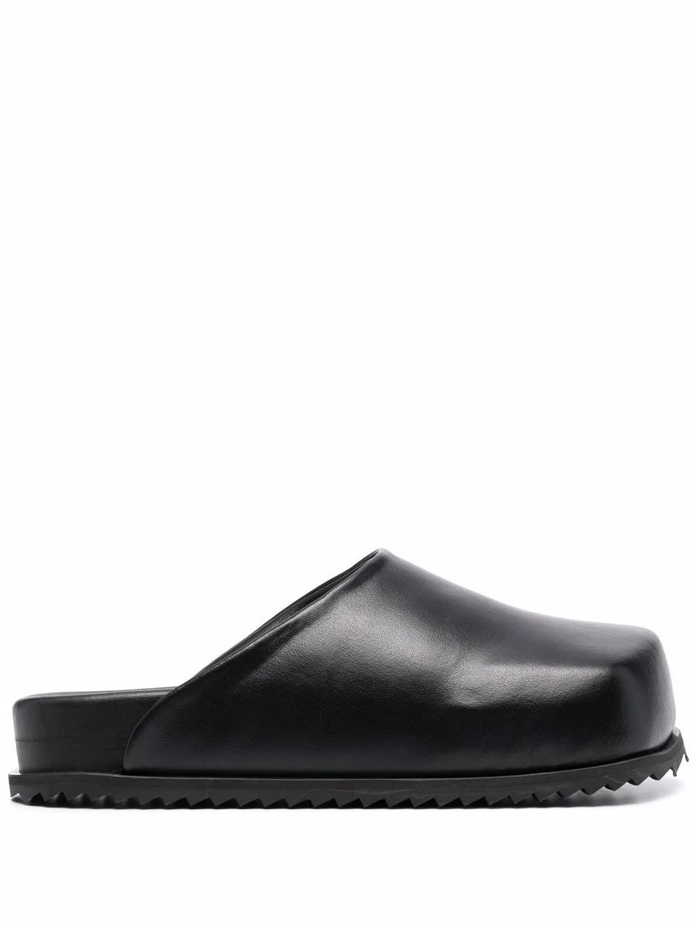 chunky slip-on slides jet-black branded insole slip-on style round toe flat rubber sole Imported Composition Outer: Rubber 100% Sole: Rubber 100% SIZE & FIT Measurement HEEL 1.37 in(3.5 cm) Sole height 1.18 in(3 cm)