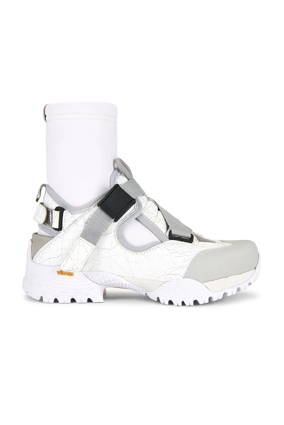 - Cracked faux leather and textile upper with Vibram sole - Grosgrain strap with buckle closure - Neoprene sleeve - Hook and loop back velcro strap - Revolve Style No. YUMR-WZ3 - Manufacturer Style No. CW-0012