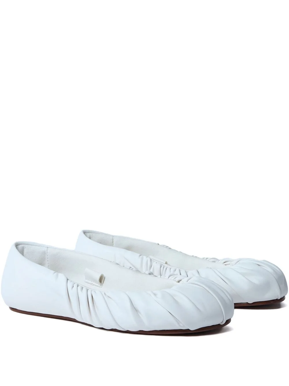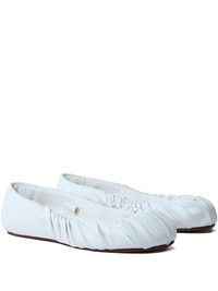 faux-leather ballet flats Highlights - White - Leather sole - Gathered detailing - Round toe Imported Composition Sole: Calf Leather 100% Lining: Fabric 100% Outer: Artificial Leather 100%