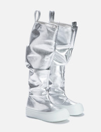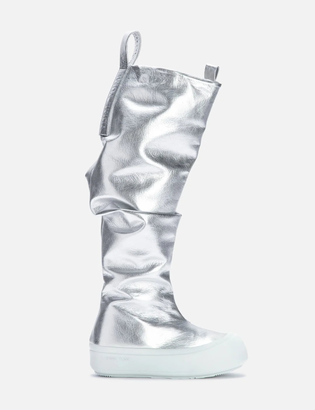 - Yume Yume - Fisherman Boot - Vegan leather upper - Wide fit - Round toe - Wrinkled effect - Front and rear pull-tabs - Logo embossed on pull-tabs - Rubber outsole with 70% recycled rubber - Color: Metallic - Material: Polystyrene, Aliphatic Resin, Rubber - See more Boots and Shoes