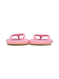 Padded buffed faux-leather slip-on sandals in pink. · Thong-style strap at vamp · Logo stamp at padded footbed · Piping at welt · Faux-leather sole Supplier color: Gum/Iris Synthetic. Made in Portugal 231844F124010