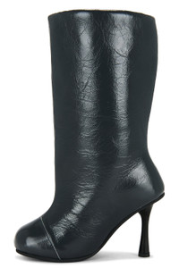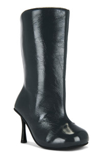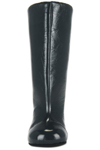 - Faux patent leather upper with manmade sole - Pull-on styling - Faux leather footbed with textile lining - Rounded toe - Approx 90mm/ 3.5 inch heel Approx 255mm/ 10 inch shaft Opening measures approx 15.7" in circumference - Revolve Style No. YUMR-WZ9 - Manufacturer Style No. ROB-0005