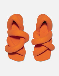 - Yume Yume - Sausage Heel - Slip-on design - Open square toe - Padded suede straps - Woven branding label on the sole - Puffy heel - Color: Orange - Material: Suede, Rubber - See more Heels and Shoes