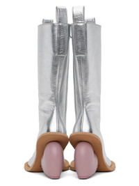Calf-high grained faux-leather boots in metallic silver tone. · Pull-loops at collar · Zip closure at inner side · Logo embossed at heel tab · Sculptural heel with rubber injection · Neolite foam rubber sole · Heel: H3.75" Supplier color: Metallic/Pink Upper: synthetic. Sole: rubber. Made in Portugal 241844F114004