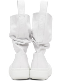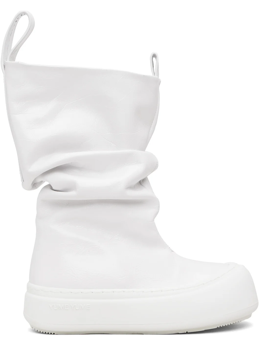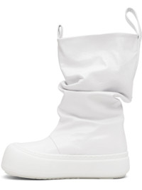 Mid-calf crinkled leather boots. · Gathering throughout · Logo-embossed pull-loops at collar · Grained faux-leather lining · Logo-embossed rubber platform midsole · Treaded rubber sole · Platform: H1.75" Supplier color: Wrinkled white Upper: leather. Sole: rubber. Made in Portugal 252844F114002