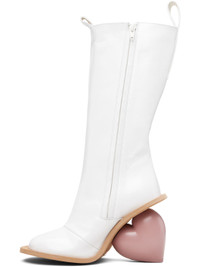 Knee-high crinkled leather boots. · Logo-embossed pull-loops at collar · Zip closure at inner side · Microfiber lining · Sculptural heel · Rubber sole · Heel: H4" Supplier color: Wrinkled White Upper: leather. Sole: rubber. Made in Portugal 261844F115008