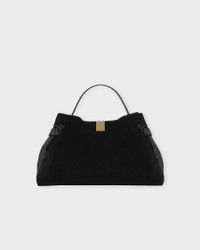 Bag Gyoza Suede Black from Yuzefi. The Gyoza is a structured top-handle bag, crafted from luxurious Italian suede. Elegant gold-tone hardware adds a sophisticated finish, making it perfect for both everyday use and special occasions. Its practical size fits all your daily essentials, while the versatile design allows it to be carried over the shoulder, in hand, or on the arm. The bag closes with a discreet magnetic fastening and features an adjustable and removable shoulder strap. Size and Fit - 23 cm x 32 cm x 11 cm Specification - Article number - ID: 176618-000 - Brand: YUZEFI - Color: Black