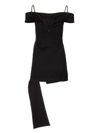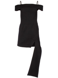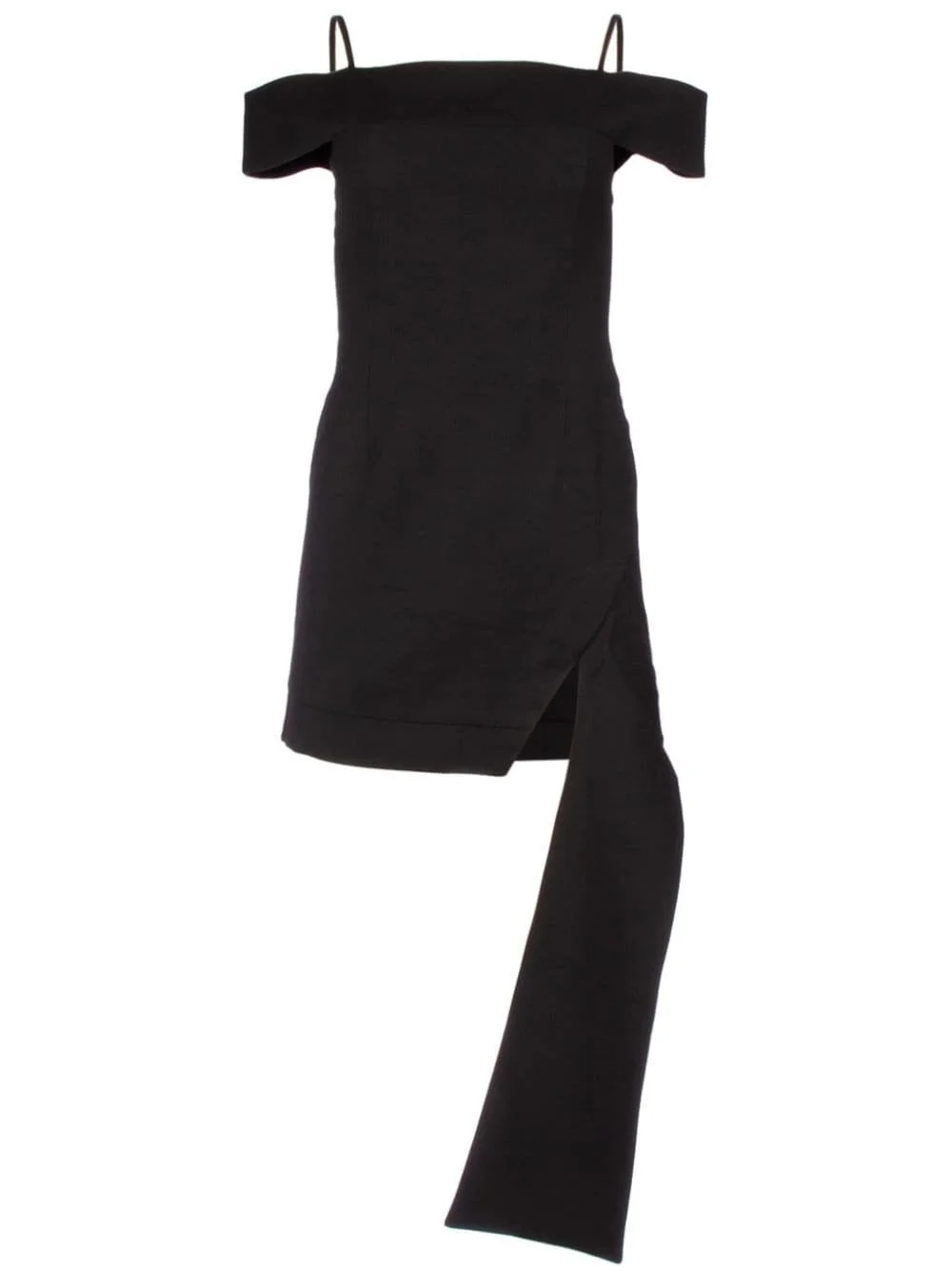 strap-detailing dress Highlights - Black - Cotton - Crepe texture - Strap detailing - Side slit - Off-shoulder - Concealed rear zip fastening - Spaghetti straps - Short sleeves - Asymmetric hem - Thigh-length Imported Composition Cotton 100%