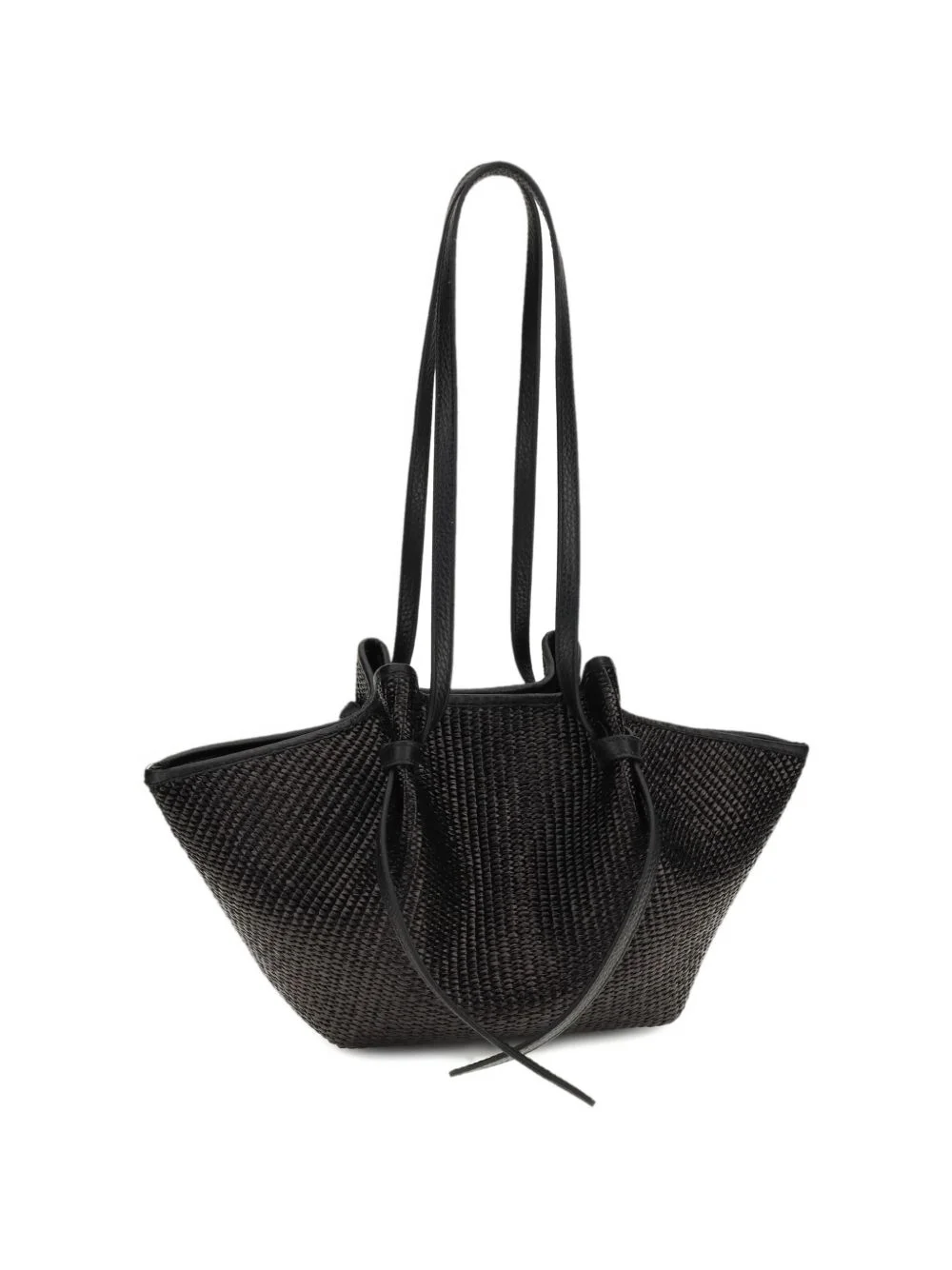 Mochi shoulder bag Highlights - Black - Woven design - Top handle - Tie detail Imported Composition Outer: Raffia 100% SIZE & FIT Measurement DEPTH 5.11 in(13 cm) HEIGHT 7.48 in(19 cm) WIDTH 15.74 in(40 cm)