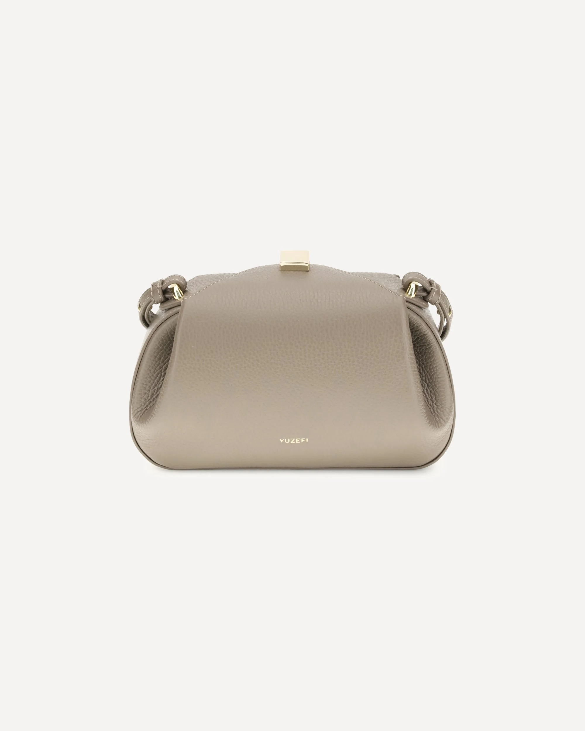 Yuzefi's Oyster Shoulder Bag is a sophisticated accessory made of luxurious black Italian grained leather. Elegant and versatile, it features an adjustable leather shoulder strap and a removable gold chain handle, allowing it to be worn over the shoulder as well. Complemented by a practical magnet closure and gold-tone metal details, it is the perfect choice for a refined and contemporary look. DETAILS - Sku: YUZSS25HBMOYCL052_TAUPE - Season: AW25 - Dimension: 23x23x12 - Composition: GENERAL 100% Calf Leather Bos Taurus - MADE IN SPAIN
