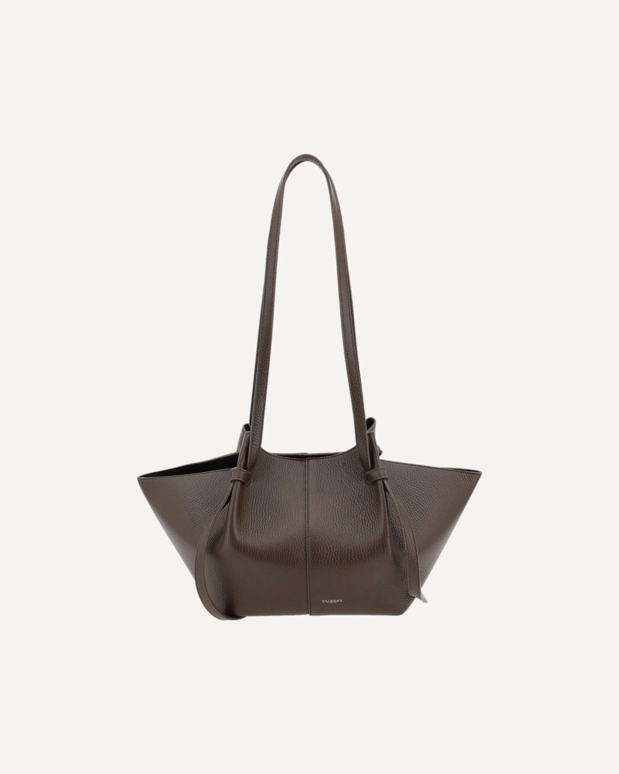 Yuzefi's Mochi leather shoulder bag features a stylish leather design with a magnetic button top closure. Double flat handles ensure practicality, while the interior, with a single compartment, offers ample space. The brand's iconic signature is contrastingly printed on the front. The soft, fold-over geometric design adds a touch of modernity and versatility to this refined accessory. DETAILS sku YUZCOHBMOL038_ESPRESSO composition: CALF LEATHER BOS TAURUS 100% color group: BROWN gender: WOMAN season: SS25 size chart: UNI category name: SHOULDER BAGS dimensions: 17 x 19 x 12 cm