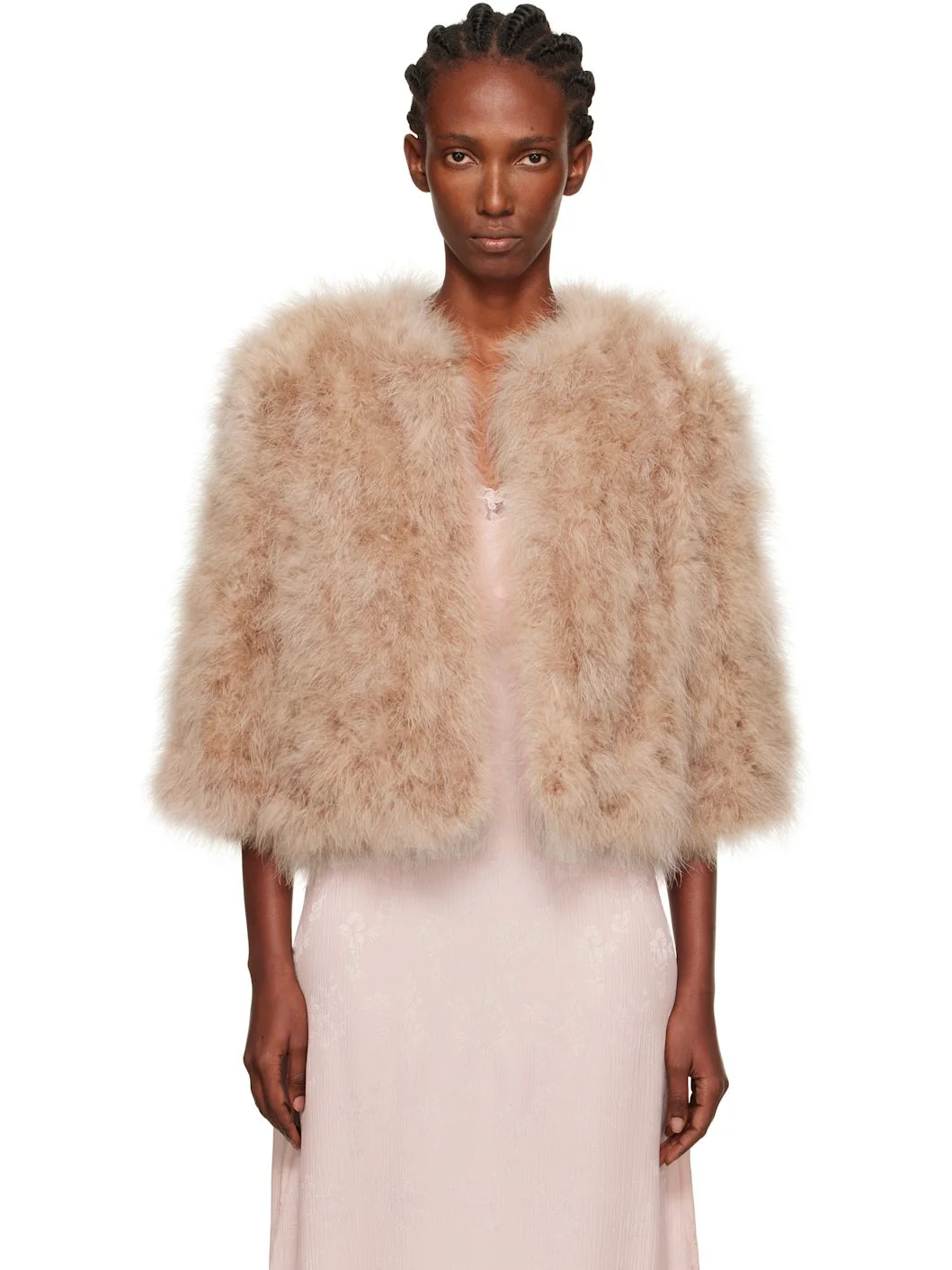 Beige Short Feather Jacket