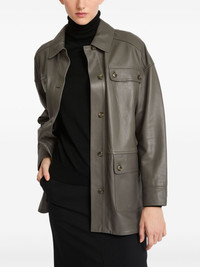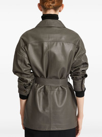 belted leather jacket Highlights - Taupe grey - Lambskin - Front button fastening - Belted waist - Stitched-fold detailing - Four front flap pockets - Classic collar Made in France Composition Lining: Polyester 100% Outer: Lamb Skin 100%