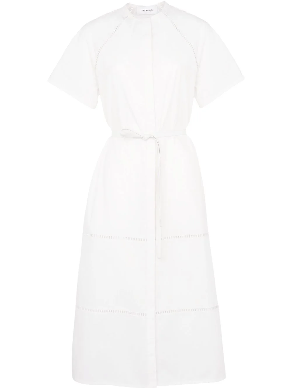 belted midi dress Highlights - White - Belted waist - Round neck - Short sleeves - Straight hem Made in France Composition Cotton 95%, Lamb Skin 5%