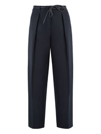 belted trousers Highlights - Navy blue - Concealed front fastening - Self-tie fastening - Pleat detailing - Two rear welt pockets Made in France Composition Polyester 55%, Wool 45%