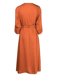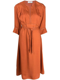 belted-waist midi dress burnt orange unlined round split neck belted waist three-quarter length sleeves mid-length Made in France Composition Body: Viscose 100% Washing instructions Dry Clean Only